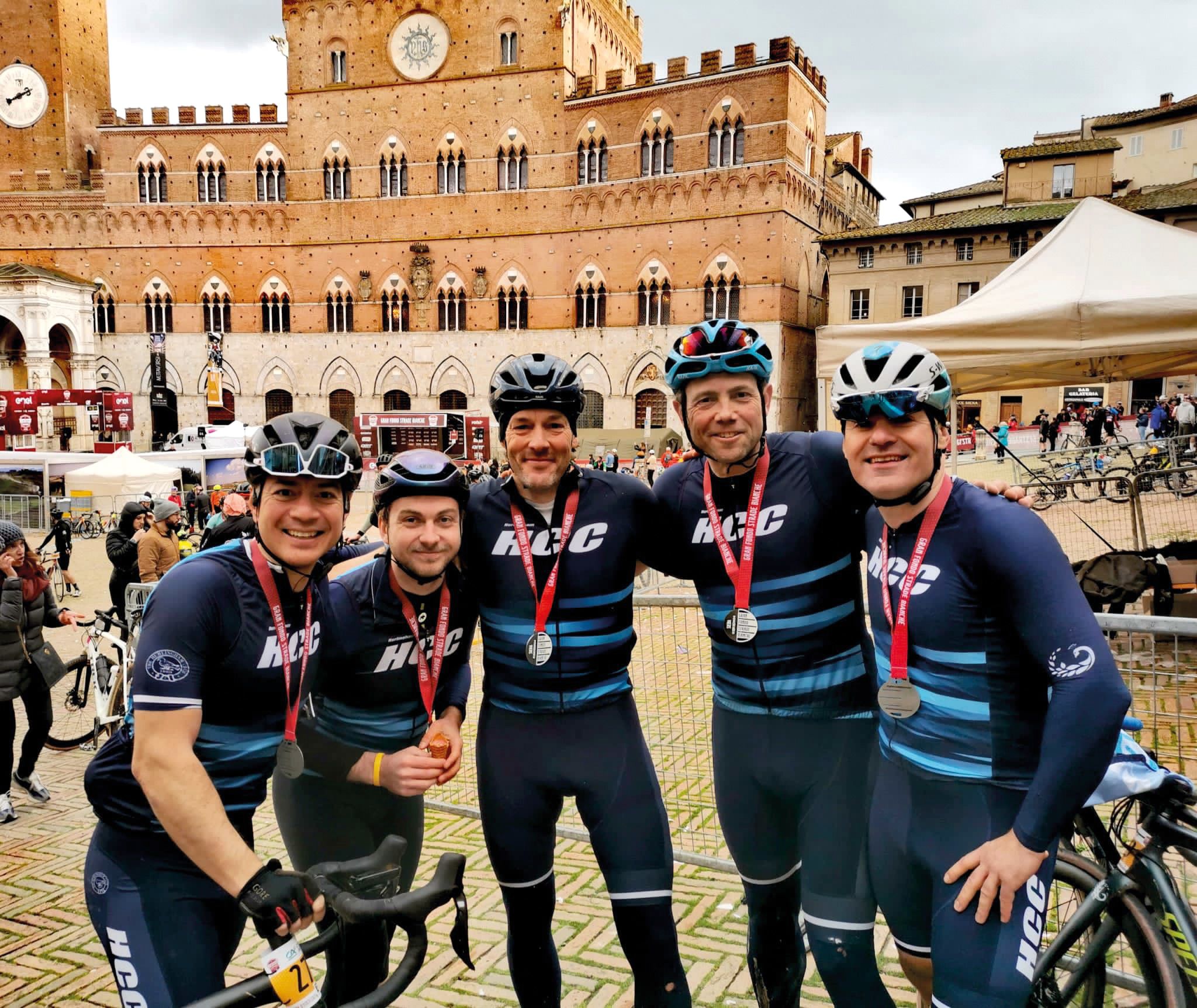 Meanwhile, blessed with the new Wattbikes in the Gym to support their training regimes, our cyclists have blossomed. Following their success on the sun-kissed Italian ‘pave’ at the Strade Bianche in March, HCC Chair, Charlie Longridge, and Hurlingham Swimming and Fitness instructor, Jerzy Horczyk, led a smaller group to the Ardennes on 20 April for ‘La Doyenne’, the more daunting challenge of Liège-Bastogne-Liège. This race is arguably the oldest and most challenging of the Spring Classics at 258km and 4300m of elevation. Greeted by freezing temperatures, rain and hail, it certainly lived up to its billing, but the weather-beaten team completed the course in just over 10 hours of cycling time – to much celebration and choruses of ‘never again…’.