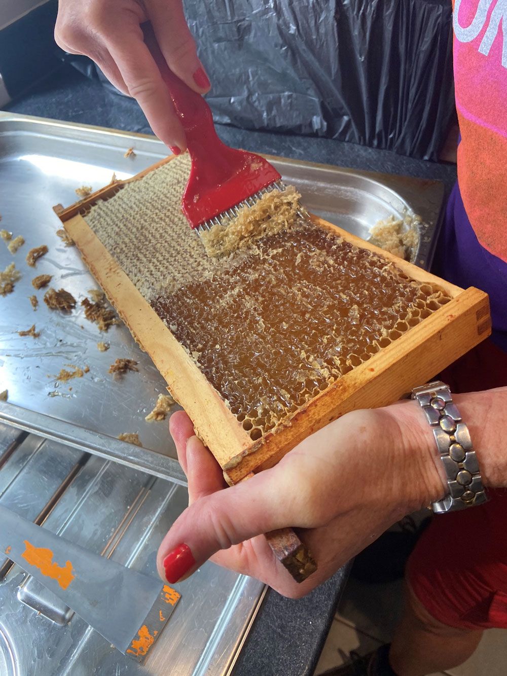 And so to the week starting 12 August: Kathy and our enthusiastic in-house apiarists were able to take off another 100lbs of our Hurlingham honey.