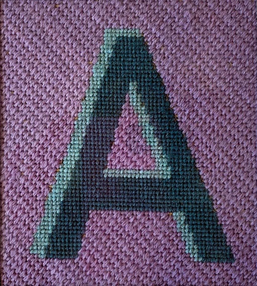 Jan Robinson chose to stitch an initial for each of her seven grandchildren – all (the initials, not the children) have been framed and distributed to the young recipients. A needlework novice two years ago, Jan has carefully chosen to match the colours and styles of those initials with that of each child’s personality. Initials make lovely gifts at any age
