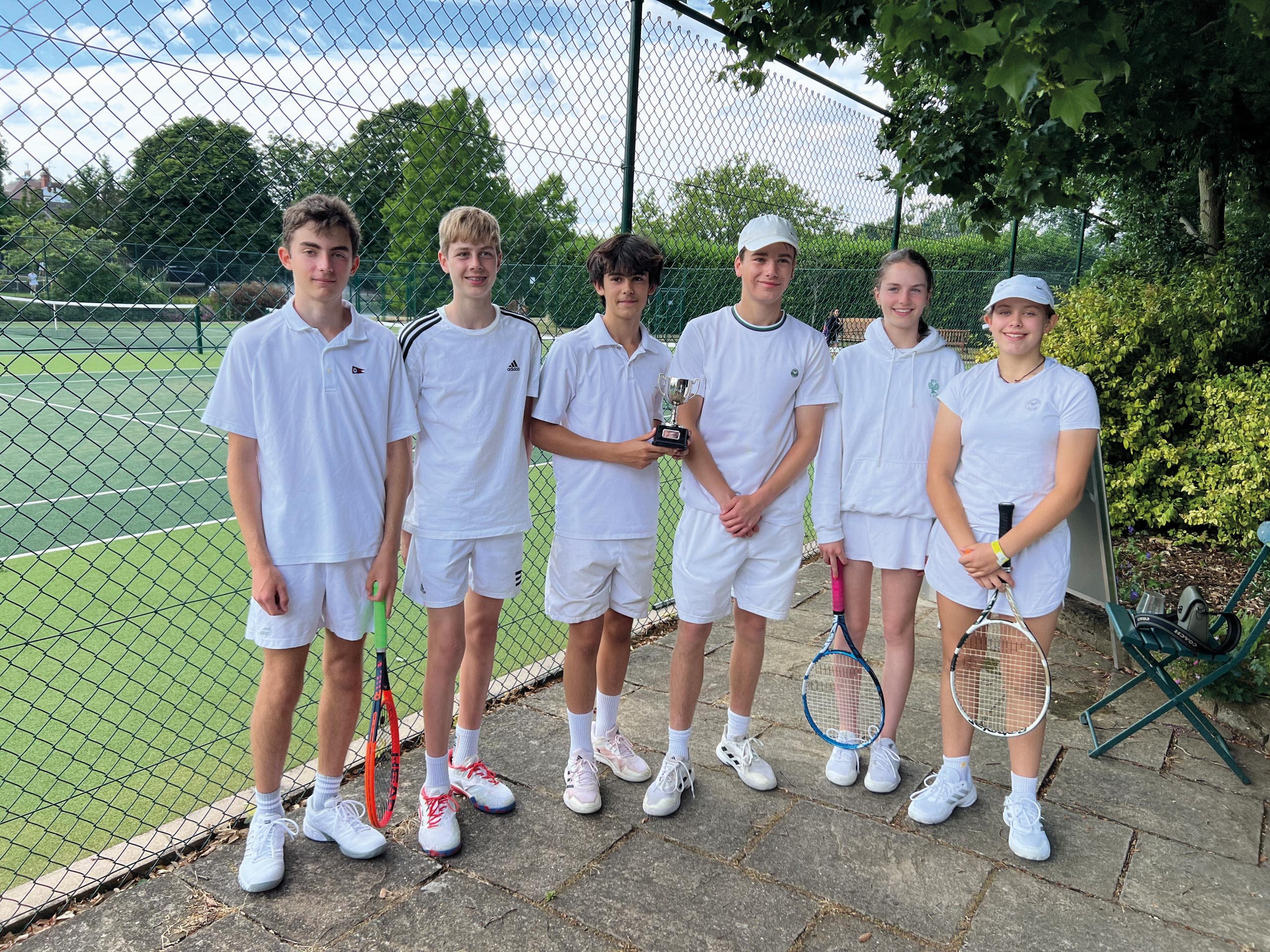 Our juniors faced a range of excellent players for a place in the next round of a tournament whose final is ultimately played on the courts of the All England Club. Sixteen boys and eight girls participated – our home players, Max Warner and Bea Cazenove were both runners up! Pictured: Bea, far right, with winner, non-member Hina Nakamura.